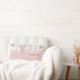 Almohada adorable con estadísticas de nacimiento del bebé y tendedero de ropa rosa.