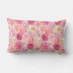 Una encantadora almohada lumbar floral de color rosa, blanco, rosado y magenta.