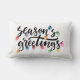 Seasons Greetings Navidades Ilustra el Cojín decorativo Lumbar de color blanco o Personalizado. Decore su hogar esta temporada de Navidades y dé la bienvenida a los huéspedes con GREETINGS DE SEASON en esta almohada de tiro con tipografía moderna de caligrafía acentuada por Navidades coloridos brillantes de color acuarela en su elección de texto, título gráfico y color de fondo (mostrado en blanco y negro). ASISTENCIA: Para obtener ayuda con la modificación del diseño, póngase en contacto con el diseñador ANTES DE PEDERSE a través de la pestaña MENSAJE de chat Zazzle que aparece a continuación o envíe un correo electrónico a makeitaboutyoustore@gmail.com.