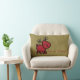 Una almohada de madera con un ilustracion de renos de Navidades rojos. Festiva y linda. El fondo es una imagen digital de papel kraft marrón. El texto del personalizable dice: Saludos de temporada.