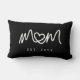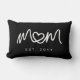 Simple White Script Unique Heart Mom Established Lumbar Pillow design features clean script typography with a small heart detail integrated into the word mom, creating a simple and meaningful focal point. The black background gives the design a modern, classic look while keeping the personalized establishment year easy to highlight.