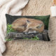 Un zorro rojo usa un viejo trozo de árbol como un lugar para descansar en el borde del bosque.