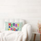 Un diseño festivo con letras de colores audaces, un muñeco de nieve, un reno y un pino sobre un fondo encantador de menta blanca.