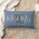 Bienvenidos amigos y familia a su casa con esta almohada Lumbar personalizada con escritura de tipografía de Mr. Es un diseño elegante con un fondo azul polvoriento moderno. El centro tiene el apellido de la novia y el novio escrito en monograma en gris claro. El texto es "mr y mrs" en letras de escritura manuscritas de tendencia blanca. La fecha establecida está diseñada en simples letras tipográficas a lo largo de la zona inferior. El diseño está en ambos lados. Hace una idea de regalo boda perfecta y única para recién casados. Haga clic en la opción Personalizar plantilla y siga las instrucciones.