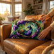 Cojín Lumbar Stained Glass Peacock Floral Wreath Art