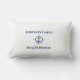 Su nombre Beach House Compass Anchor Blue sobre el cojín blanco lumbar de almohada.