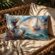 Un paisaje marino al aguafuerte que captura un momento de quietud donde el océano y el alma se encuentran. Una mujer elegante se sienta en un muelle desgastado, su cabello coronado de flores flotando en la brisa mientras un velero se desliza hacia el horizonte brillante. Tonos suaves de índigo y coral se mezclan con nubes a la deriva, creando un equilibrio tranquilo de luz y mar. Esta visión romántica de la costa evoca reflexión, libertad y la atracción eterna de costas lejanas. Arte generado por IA.