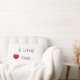 Una almohada blanca con un corazón rojo y las palabras "Te amo".