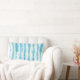 Una almohada contemporánea con patrón shibori en tonos de turquesa.