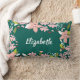 Cojín Lumbar Verde con flores rosas personalizadas