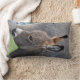 Un amortiguador o una almohada rectangular vertical con el retrato de la foto de un burro del bebé, con una capa y un negro marrones grises, los oídos melenudos del blanco y del moreno, colocándose al lado de él es madre.