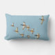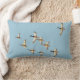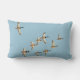 Diez patos mallard vuelan en formación a través de un cielo azul brillante.