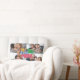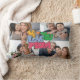 Modern "we love you mom" bright colors graphic with 4 photos and custom text lumbar pillow.