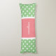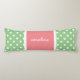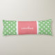 Almohada corporal de Lunares Adorables, Almohada verde lima con lunares blancos. Personaliza con tu nombre en blanco en la etiqueta blanca/rosa, perfecto para habitaciones de niños o dormitorios