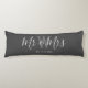 Sorprende a una pareja con este Sr. y la Sra. Gray White Script Personalizado Monograma Body Pillow. Es moderno y está diseñado en ambos lados, con un fondo gris oscuro. El centro tiene una gran letra de monograma gris claro y el texto es "mr y mrs" en letras de escritura a mano de moda blanca. La fecha establecida es inferior a los nombres. Hace una idea de regalo boda perfecta y única para recién casados. Haga clic en la opción Personalizar plantilla y siga las instrucciones.