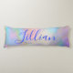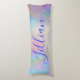Una bella almohada corporal con nombre de monograma en azul sobre el fondo madre de perla.