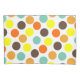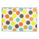 Esta funda de almohada tiene un diseño geométrico de puntos azules, naranjas, amarillos y marrones.