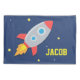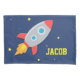 Personalice este poster de la decoración de la pared con esta nave del cohete que arruina apagado en una galaxia de estrellas a través del fondo azul marino. ¡Perfeccione para el pequeño astronauta como él vaga apagado en una aventura del espacio en dreamland!