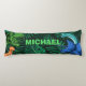 Este diseño de dinosaurios es genial para el amante de los dinosaurios en tu vida. La almohada de la hoja de la jungla con temática de dino incluye trex, triceratops, brontosaurus y raptor, y puede ser personalizada con el nombre del niño o chica.