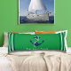 Familia o nombre de barco Navy Verde Ancla azul Rojo almohada corporal Náutica Decoración personalizada Suite de productos con Su nombre de barco, apellido o cualquier texto que desee. Con un Ancla azul marino con un diseño náutico de cuerda, en azul marino sobre fondo verde.