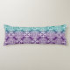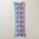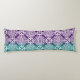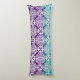Añade esta bonita almohada corporal a la decoración de tu habitación morada y verde azulada. Presenta un patrón blanco de damasco sobre un fondo verde azulado y morado.