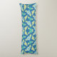 Preciosa almohada corporal que presenta un patrón de flores azules retro sobre fondo azul medio