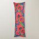 Una almohada corporal o un colchón, con un bonito y audaz patrón de adornos orientales rojos y negros escarlata, sobre un fondo azul profundo. Este patrón, que forma parte de la colección "Poppies orientales" de Posh & Painterly, se puede personalizar fácilmente al cambiar el tamaño de la ficha patrón de los Poppies por un aspecto muy diferente.