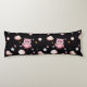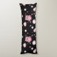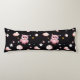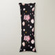 un caprichoso patrón de búho rosa claro, lunas moradas suaves y puntos de polka juguetones y estrellas en un fondo negro de medianoche.