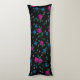 Patrón sin foco Flores azul rosadas y hojas verdes sobre fondo negro. ¡Debes saber que tienes una foto!