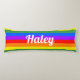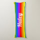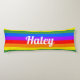 Esta almohada corporal personalizada tiene rayas de arcoiris vibrantes en negrita rojo, naranja, amarillo, verde, azul y morado. Personalice esta almohada con su nombre o un texto de su elección. Esto sería genial para los amantes de los arcos de lluvia y los colores brillantes.