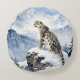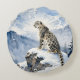 Cojín Redondo A Snow Leopard on Snowy Peak