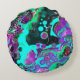 Cojín Redondo Aceite abstracto púrpura, Verde azulado, azul, col