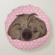 Cuidado cojín redondo con la cara lúgubre durmiendo y puntos blancos, color de fondo personalizado. Un regalo encantador y dulce para ella.