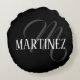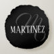Cojín Redondo Apellido personalizado elegante negro | Nombre