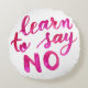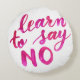 Aprende a no decir cita inspiradora. Cita inspiradora rosa escrita a mano sobre almohadas redondas.