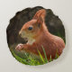 Una rara ardilla roja parece sonreír con gusto ya que disfruta de un tentempié en el césped exuberante. Su boca abierta y sus ojos brillantes reflejan la alegría pura, capturando un momento fugaz de felicidad en la naturaleza.