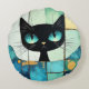 Cojín Redondo Arte de bloques de gato negro