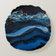 Cojín Redondo Arte fluido. Oro metálico líquido en azul abstract