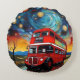 Cojín Redondo Autobús Rojo De Doble Decker En Una Noche Estelar,