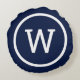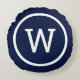 Cojín Redondo Azul Marino Moderno Elegante Monograma Preppy