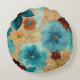 Cojín Redondo Azul turquesa, rojo, óxido y bronce floral