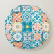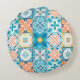Cojín Redondo Baldosas orgánicas en azul y naranja