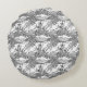 Ballenas jorobadas blancas y negras modernas con olas y nubes de almohada redonda de Jo Story de diseños de Sketchbook. Eleva tu regalo con esta almohada atemporal y caprichosa con motivos de ballena que trae las tranquilas vibraciones del mar. Perfecto para añadir un toque de elegancia a cualquier espacio para niños o adultos. ,