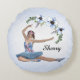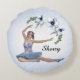 Hermosa bailarina de tutu azul y zapatillas posadas en posición de estar.