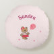 Pilar redonda con un oso bebé lindo con un globo sobre fondo rosado