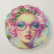 Este ilustracion de ensueño de inspiración retro cuenta con una mujer glamurosa con gafas de sol rosas de gran tamaño y una florida gorra de natación floral, frente a un tranquilo telón de fondo tropical de veleros y cielos azules. Perfecto para agregar vibraciones de verano vintage y energía femenina audaz a tus productos Redbubble, como arte mural, pegatinas o ropa. Una vibrante celebración de moda costera y fantasía floral.