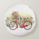 Cojín Redondo Bicicleta roja con acuarela de flores