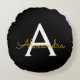 Cojín Redondo Black Gold Modern Script Girly Monograma Nombre