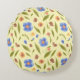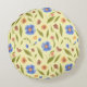 El Blooming Garden Round Pillow ofrece un diseño encantador de flores azules y naranjas en un suave fondo beige. Esta almohada es perfecta para añadir un toque de elegancia natural a cualquier habitación.