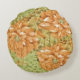 Diseño gráfico, de grandes flores, audaces, de color coral, con puntas blancas, con estampado pétalo, a través de una superficie de hojas marrón, coral y verde.